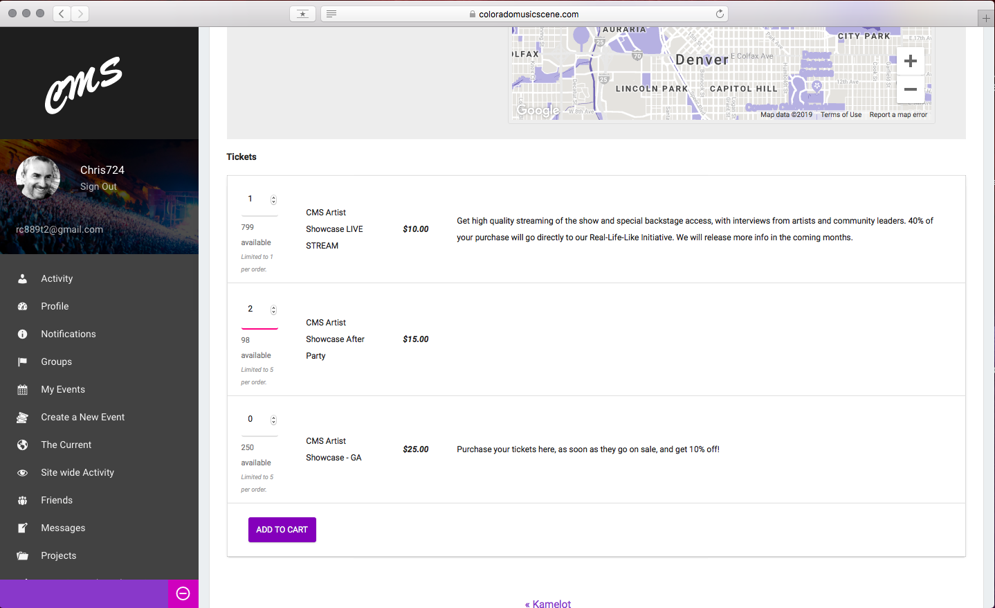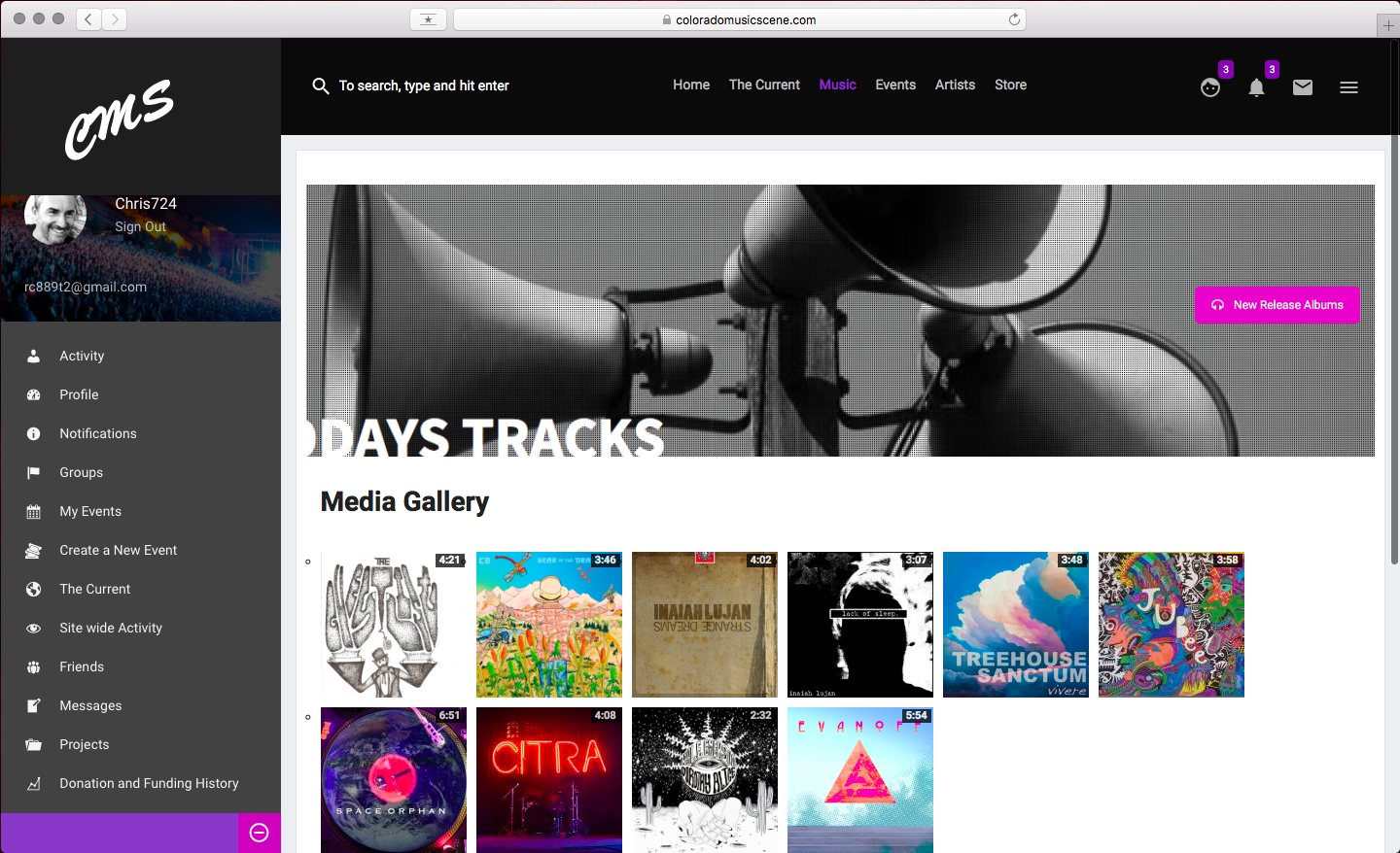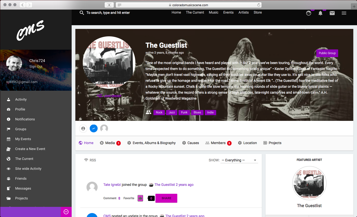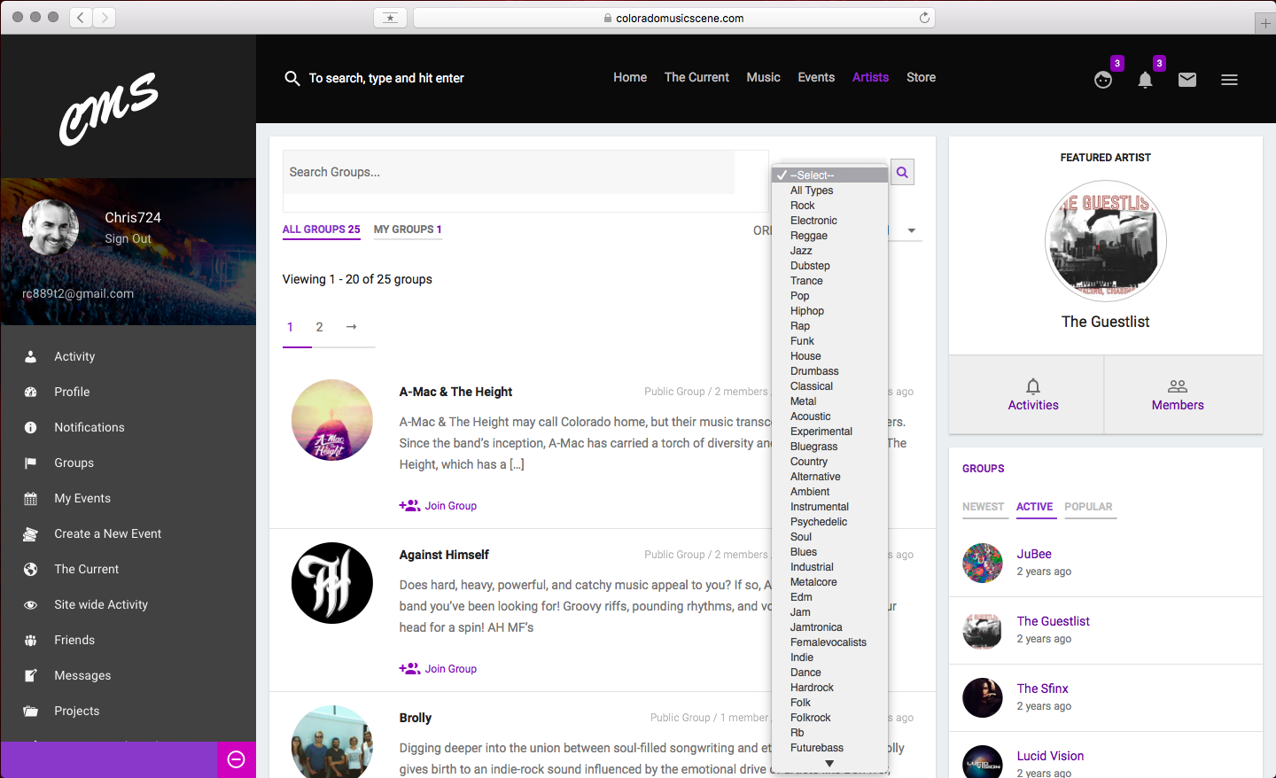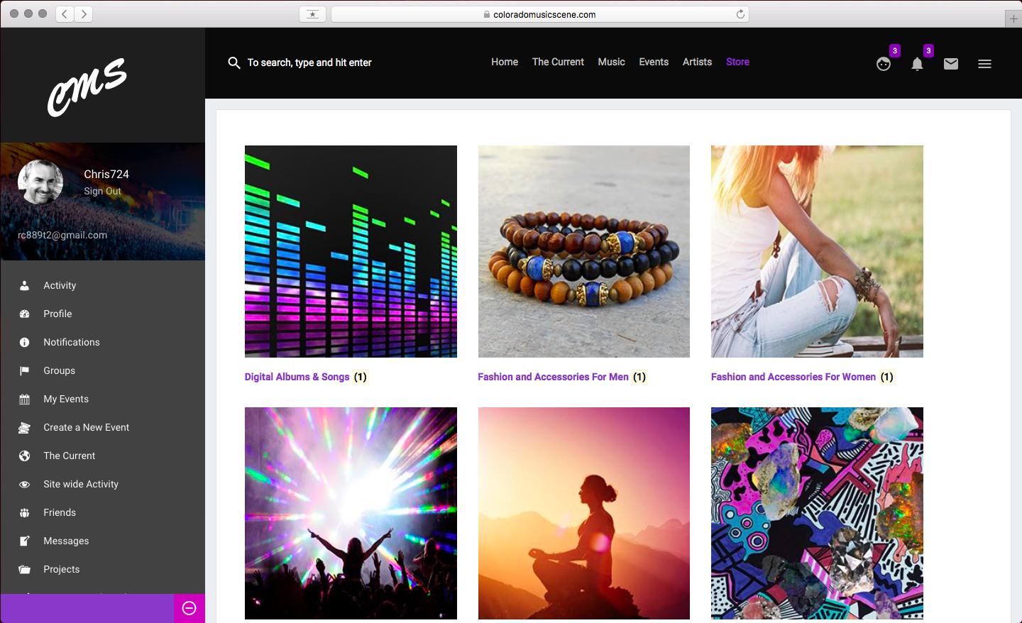 CMS ( Colorado Music Scene ) will be the first GMS brand to launch and will feature the first version of our music + lifestyle app. We want to give fans the ultimate experience with this. The app allows users to discover not just well known artists, but local up and coming artists. Users can browse, stream and share music and live streamed shows. They can find thousands of local concerts and events, and access specially curated events and experiences produced by us and our strategic partners.